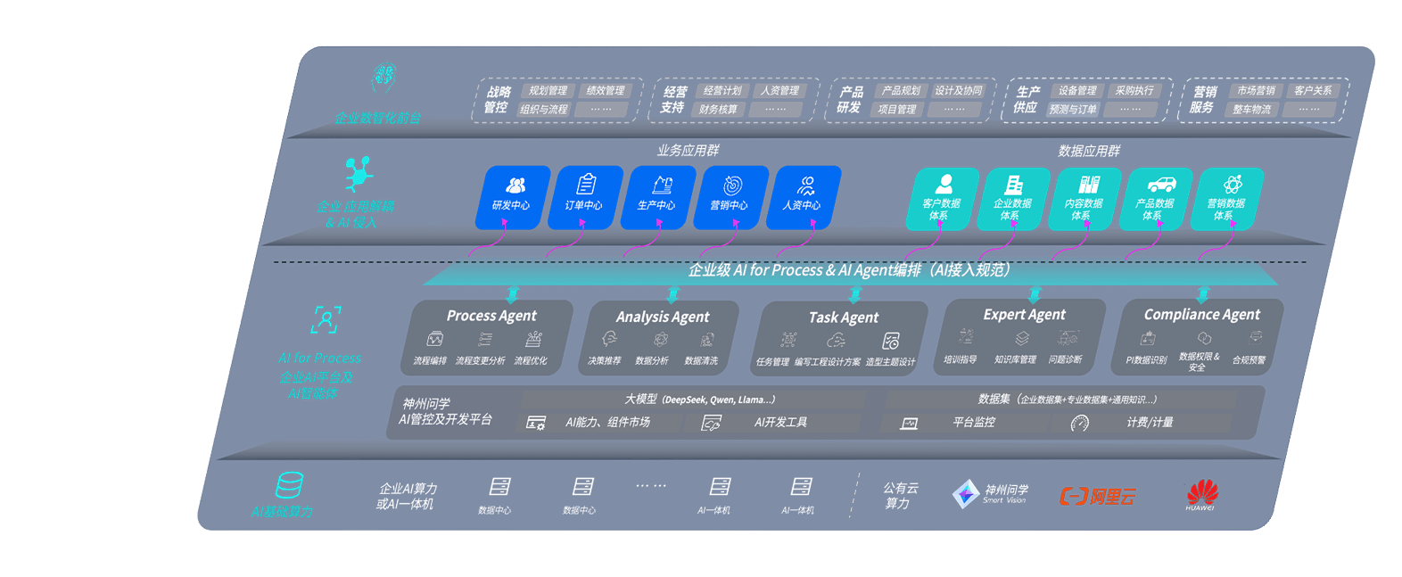 端到端的一站式AI工作空间深度融合了从企业战略规划到日常经营的全流程业务板块,,定向解决车企内部领域多、、部门多、、、链条长、、场景碎片化等难题,,支持车企快速构建以AI为核心的生产力写作体系,,,实现任务执行与AI能力的无缝集成与交互